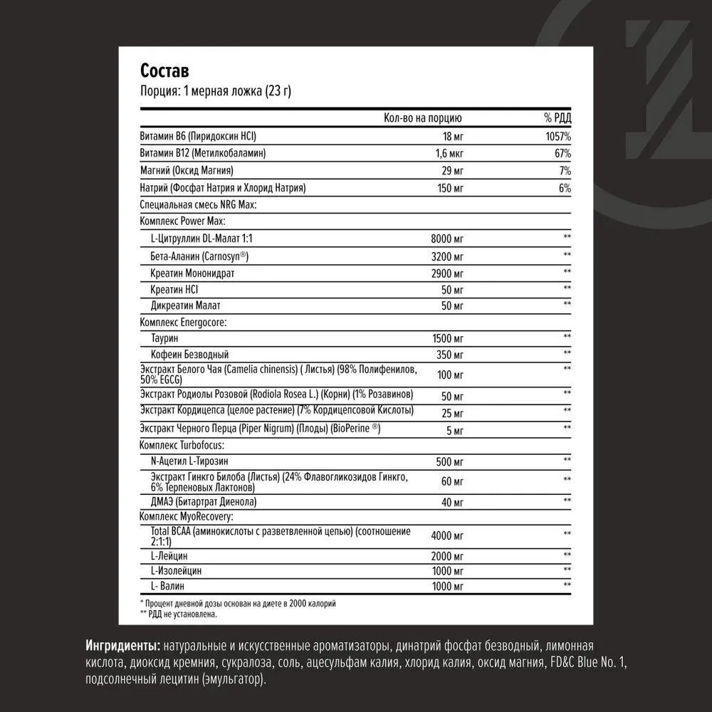 Maxler NRG Max — это высокоэффективный энергетический комплекс, созданный для повышения выносливости, концентрации и общей работоспособности. Продукт идеально подходит для интенсивных тренировок, соревнований и активного образа жизни, когда требуется быстрый и стабильный приток энергии.