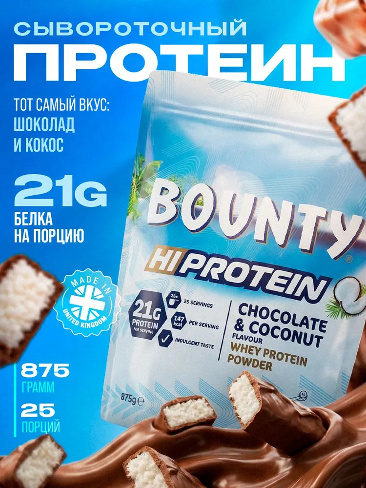 Bounty Hi Protein Powder - это концентрат сывороточного белка, который на вкус как популярный батончик Bounty.