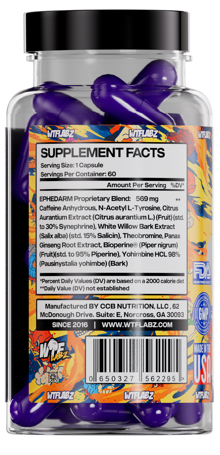 WTFlabz Ephedarm Hard — это ультраконцентрированный термогенный комплекс для профессионалов и опытных атлетов. Мощная формула на основе кофеина, синефрина, йохимбина, L-тирозина и растительных экстрактов обеспечивает сильный стимуляторный и жиросжигающий эффект, помогая телу работать на пределе своих возможностей.