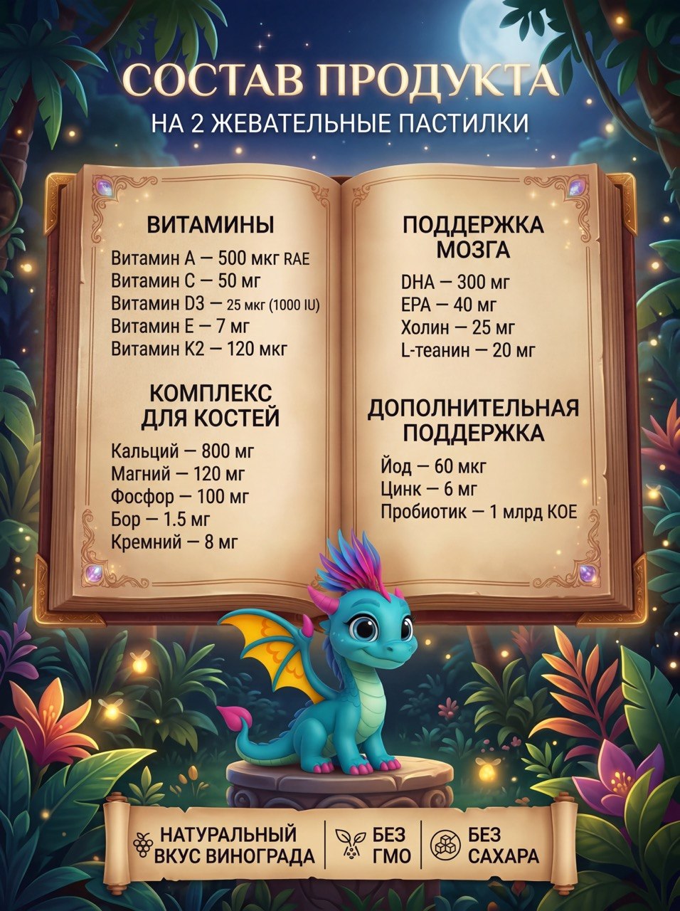 Жевательные таблетки Proper Vit Kids Calcium Plus D3 созданы для полноценной поддержки растущего организма. Сочетание важных витаминов, минералов, омега-3 кислот и пробиотиков способствует укреплению костей, развитию мозга и поддержке иммунитета.