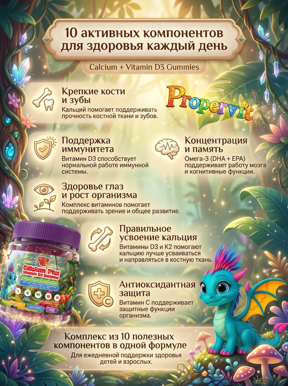 Proper Vit Kids Calcium Plus D3 – комплексная поддержка роста и здоровья ребёнка
